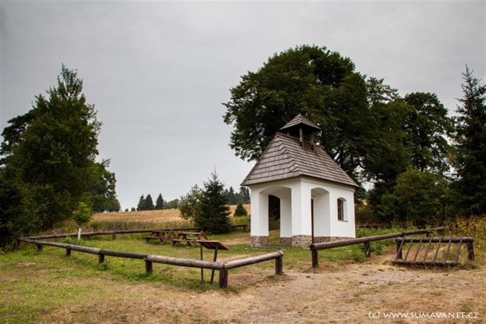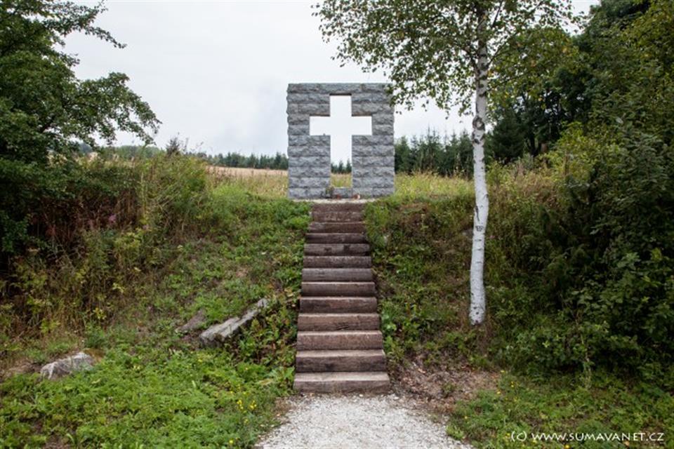 Zaniklá obec na svahu hory Javorná, kaplička, kříž smíření, památník obětem americké armády, památné stromy.
